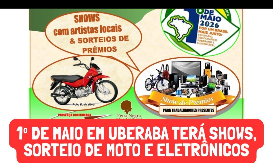 O dia do trabalhador em Uberaba será comemorado em evento com shows e sorteio de prêmios na Pça. Jorge Frange (bairro São Benedito), das 9 às 15 horas. Organizado pelo Fórum dos Trabalhadores de Uberaba, o 1º de maio tem diversos sindicatos parceiros na cidade e é uma realização nacional unificado das centrais sindicais.