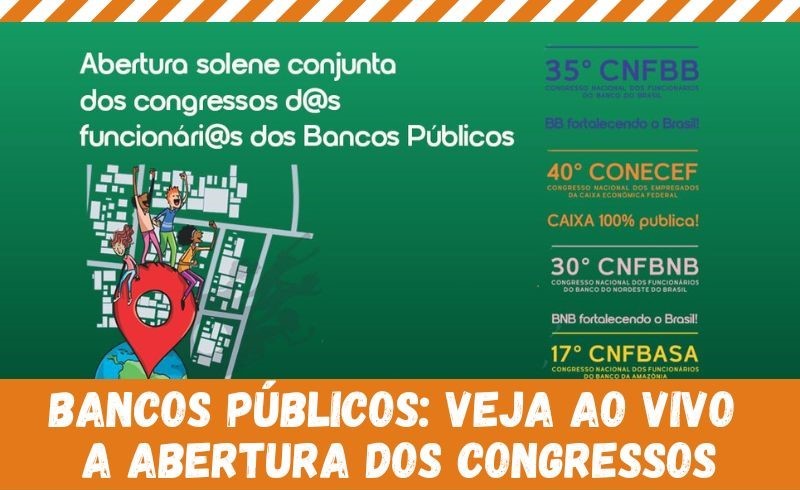 A Contraf-CUT vai transmitir, ao vivo, a abertura solene conjunta do 40º Congresso Nacional dos Empregados da Caixa; do 35º Congresso Nacional dos Funcionários do Banco do Brasil; do 30º Congresso Nacional dos Funcionários do Banco do Nordeste do Brasil; e 17º Congresso dos Funcionários do Banco da Amazônia.Solenidade desta quinta-feira (21) será transmitida,…