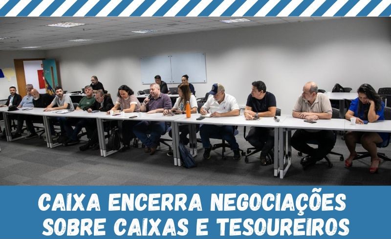 A Caixa Econômica Federal encerrou nesta quarta (28), as negociações sobre questões específicas de caixas e tesoureiros do banco, que estavam pendentes desde a Campanha Nacional dos Bancários do ano passado. A decisão do banco foi tomada depois que a representação dos trabalhadores se recusou a dar o aval para a retirada de direitos dos trabalhadores. Na reunião desta quarta, o banco se comprometeu a não mexer com o quadro atual e os direitos dos trabalhadores e, caso pretenda realizar alguma mudança, trazer para negociação com a representação dos empregados.