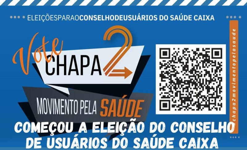 Começou hoje – 13 de janeiro – o período de votação das eleições para o Conselho de Usuários do Saúde Caixa. Todos os usuários do plano, empregadas e empregados da Caixa, da ativa ou aposentados, terão até as 18h de sexta-feira 16 para votar. O Sindicato apoia e indica voto na Chapa 2 – Movimento pela Saúde. Para votar, acesse https://eleicaosc.caixa.gov.br/siele/#/votacao.
