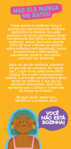 A Secretaria da Mulher da Confederação Nacional dos Trabalhadores do Ramo Financeiro (Contraf-CUT) lançou um panfleto didático e interativo sobre o que é violência nos relacionamentos amorosos, familiares, como enfrentá-los e denunciá-los, em caso de crimes que coloquem vidas em risco.
