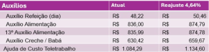– Reajuste de 8% na verba de requalificação, com isso o valor passa a ser R$ 2.285,84;