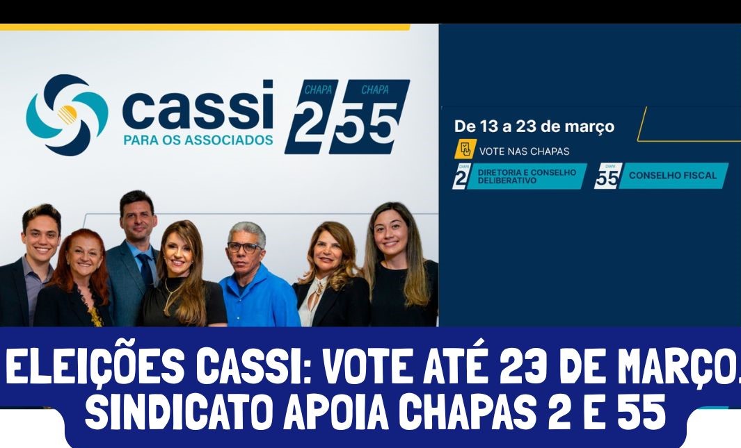 ELEIÇÕES CASSI: VOTE ATÉ 23 DE MARÇO. SINDICATO APOIA CHAPAS 2 E 55