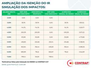 Veja na tabela* a seguir, como funcionará a isenção e os descontos, e quanto sobrará no bolso dos trabalhadores: