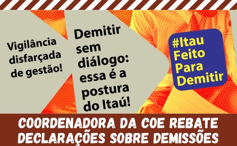 A coordenadora da COE Itaú classificou como “bizarra e ofensiva” a tentativa do banco de desqualificar publicamente trabalhadores que, até pouco tempo, eram motivo de orgulho interno. “É inadmissível ver um banco que se diz ‘feito de pessoas’ e que prega ‘respeito’ em suas campanhas publicitárias, expor seus ex-funcionários dessa maneira. Isso destrói carreiras e fere a dignidade de quem dedicou anos de trabalho à instituição”, criticou.