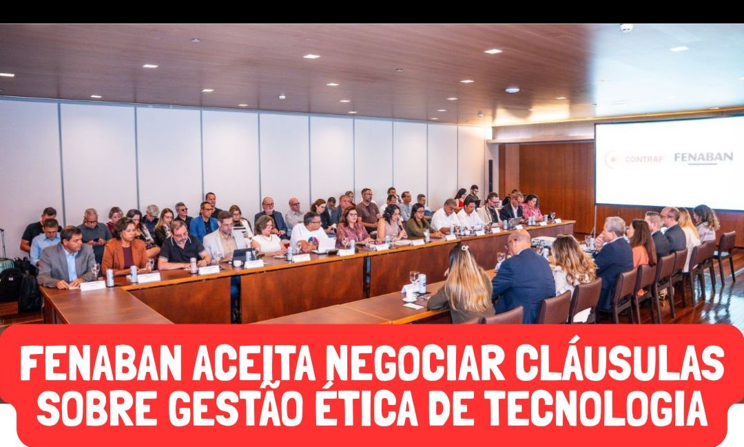 A Federação Nacional dos Bancos (Fenaban) aceitou formalmente negociar com o Comando Nacional dos Bancários cláusulas sobre uso e gestão ética de tecnologias na relação de trabalho. A confirmação ocorreu nesta quinta (16), na mesa de negociação permanente “Novas Tecnologias, como IA, e a Atividade Bancária”.